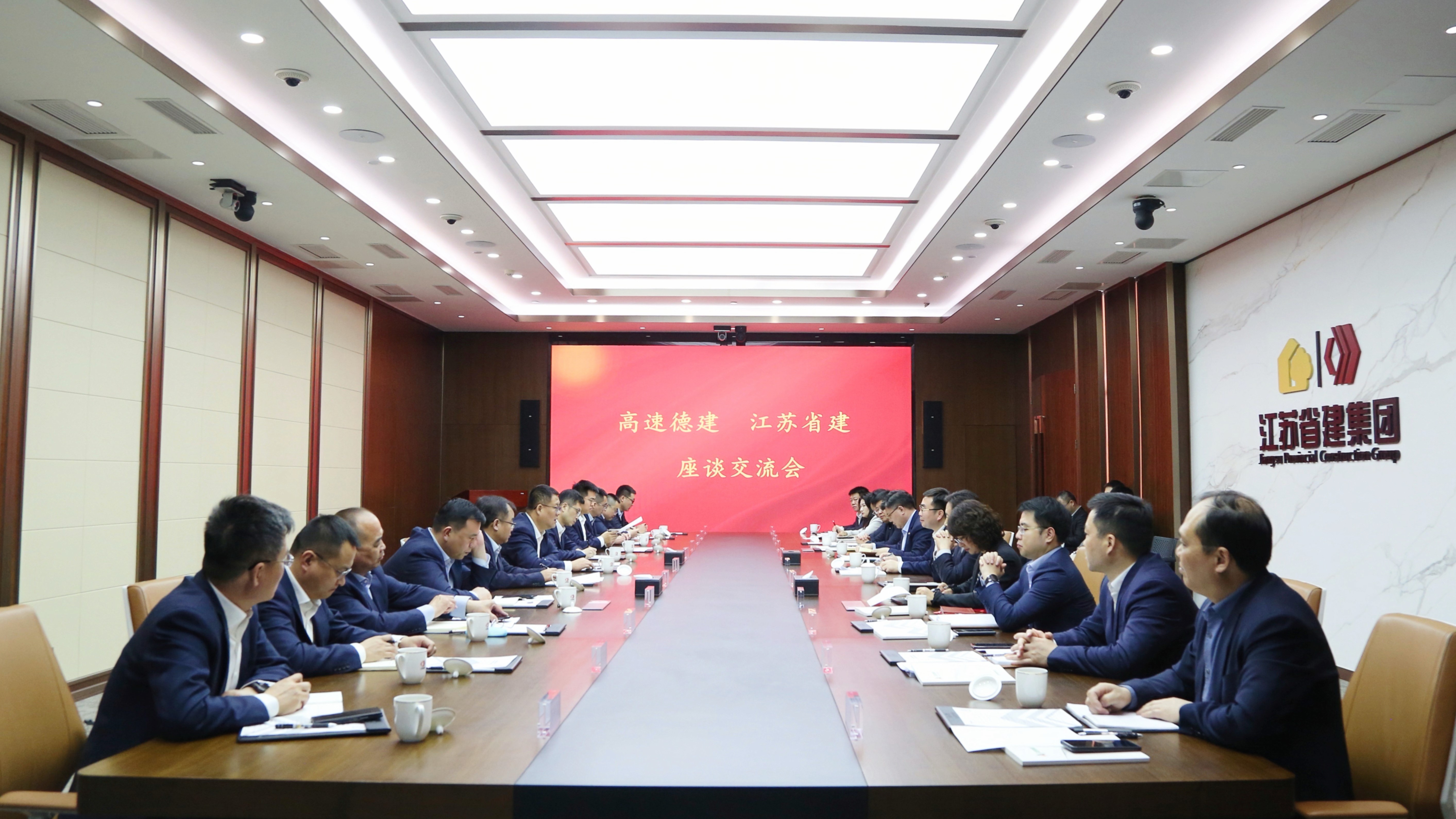 蔣寧對趙建強一行的到訪表示誠摯歡迎,并介紹了集團發(fā)展概況、業(yè)務結構、市場布局、核心競爭優(yōu)勢等情況。他表示,高速德建作為山東省建筑業(yè)全鏈條龍頭骨干企業(yè),置身行業(yè)轉(zhuǎn)型升級和深度變革調(diào)整中,持續(xù)釋放混改紅利,保持了穩(wěn)中有進、進中提質(zhì)的發(fā)展勢頭。近年來,江蘇省建圍繞重點工作攻堅,苦練內(nèi)功,強化管理,深化結構調(diào)整,全力穩(wěn)經(jīng)營、促轉(zhuǎn)型、防風險。下一步,圍繞資源共享、平臺共建、發(fā)展共贏,希望雙方充分發(fā)揮互補優(yōu)勢,加強交流互鑒,在國內(nèi)外業(yè)務拓展、區(qū)域市場協(xié)同發(fā)展、項目管理對標等方面深化合作,提升合作水平,擴大合作成效,實現(xiàn)共贏發(fā)展。