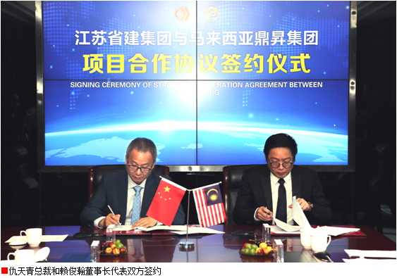 簽約儀式上,江蘇省建集團總裁仇天青和馬來西亞鼎昇集團董事長賴俊瀚分別代表雙方致辭。他們在致辭中分別介紹了企業(yè)的的基本概況和主要業(yè)務(wù)發(fā)展情況,雙方一致表示,將本著“互利共惠”的原則,利用各自優(yōu)勢資源,開展全方位深層次合作,努力實現(xiàn)互利共贏,相信江蘇省建與鼎昇集團的合作一定能夠取得圓滿成功。